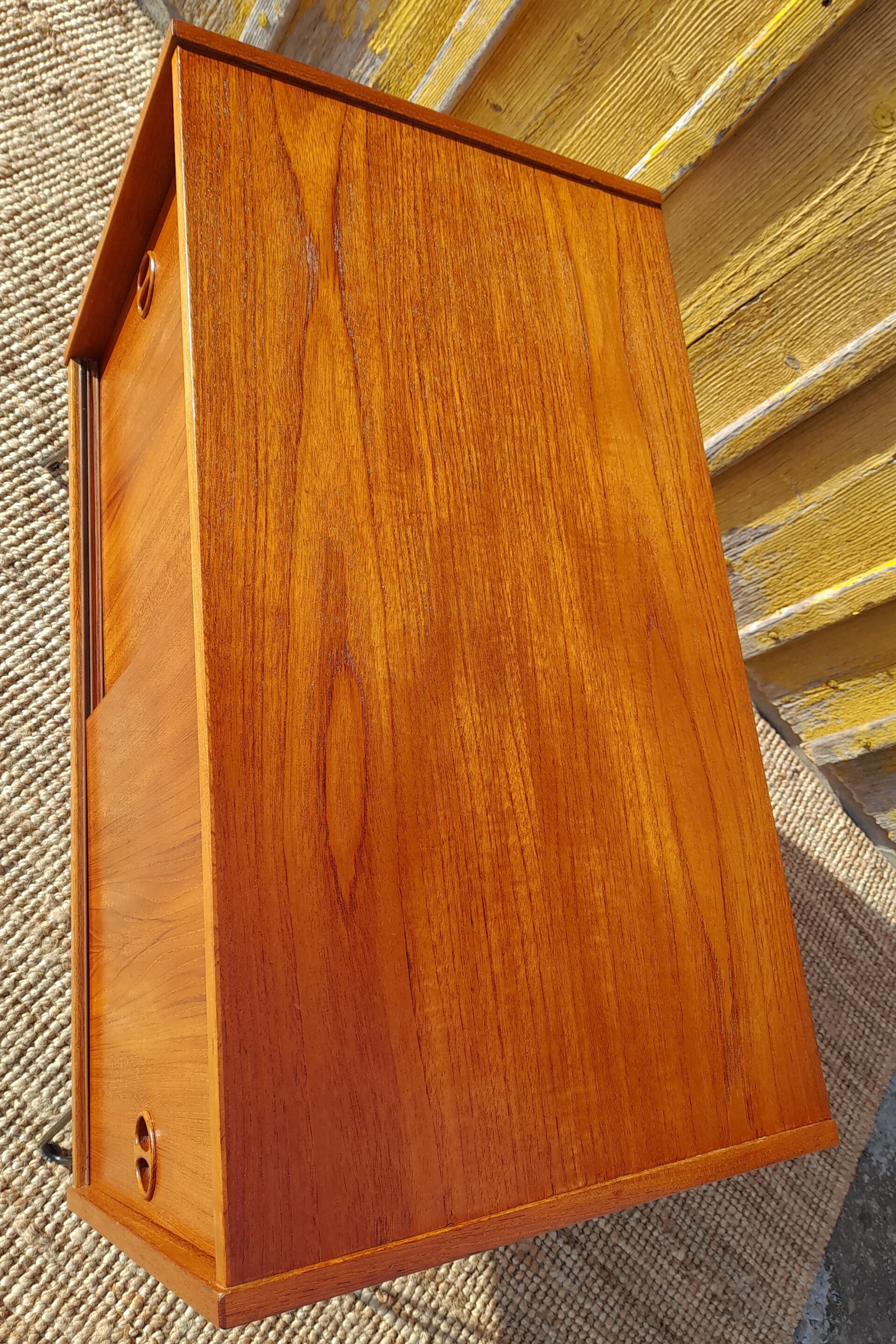 schöne mid century Schiebetürenkommode aus Teakholzfurnier restauriert