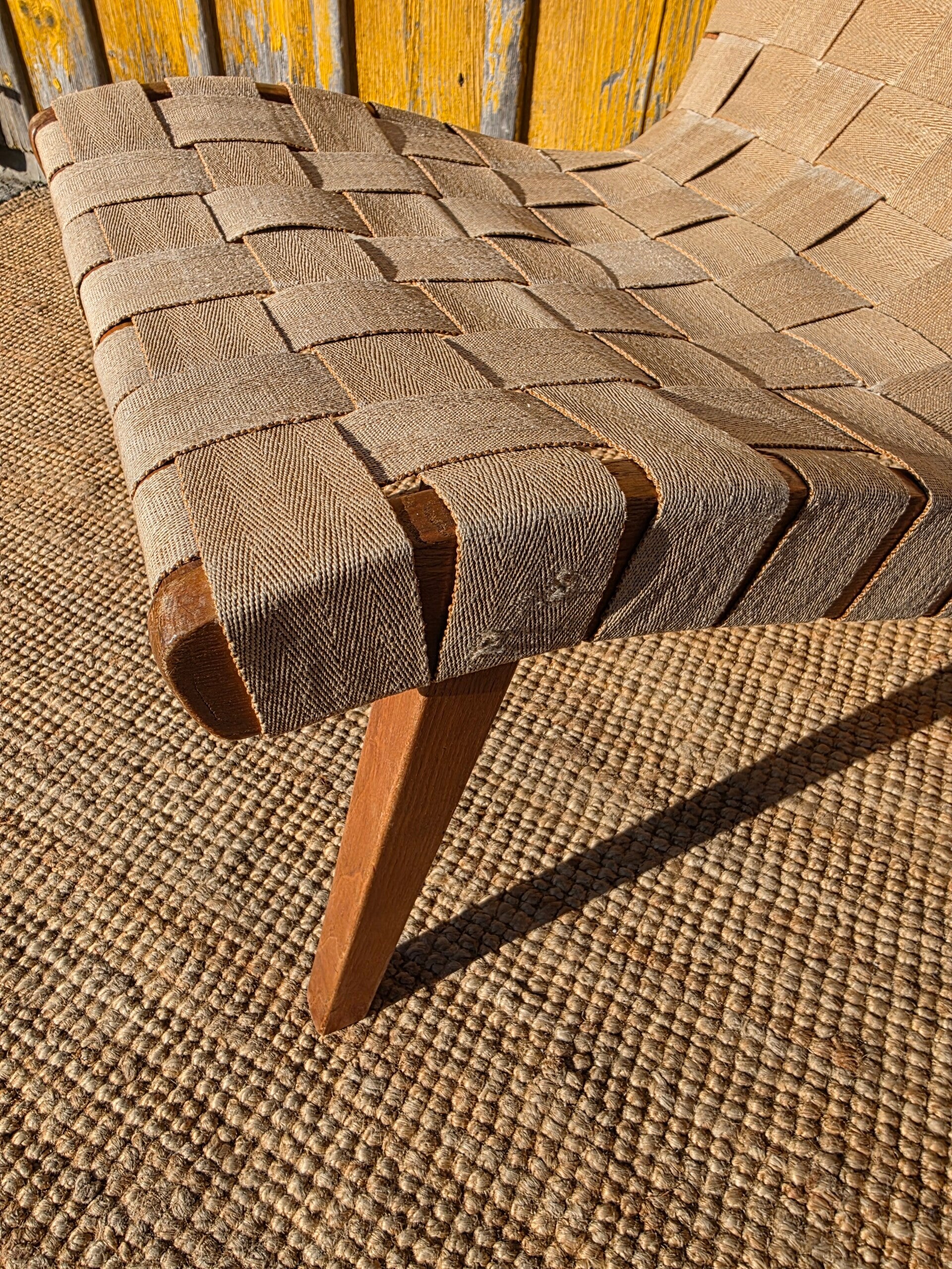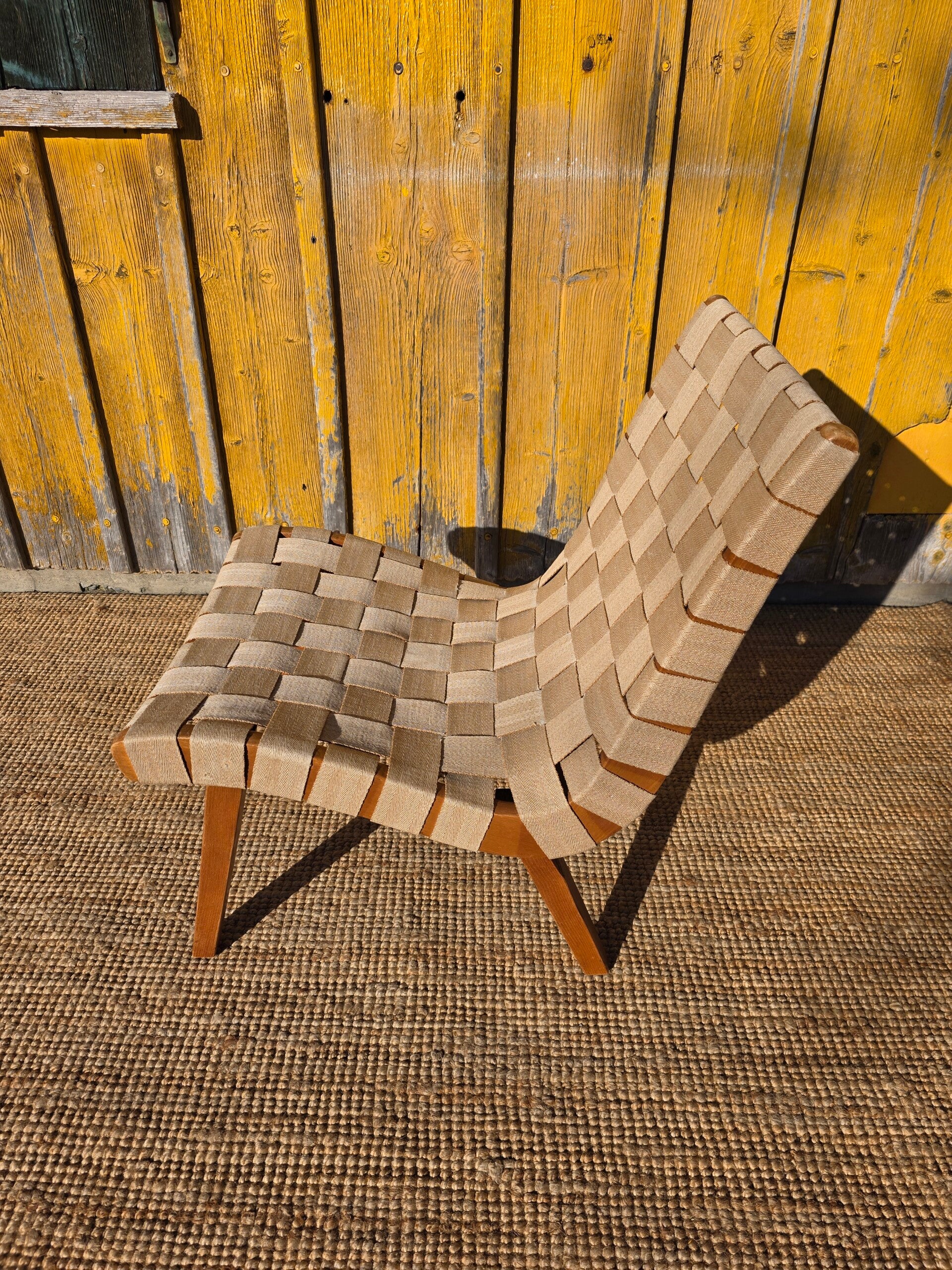 Schöner , sehr frühe Version des Jens Risom Sessel mit Originaler Gurtbespannung