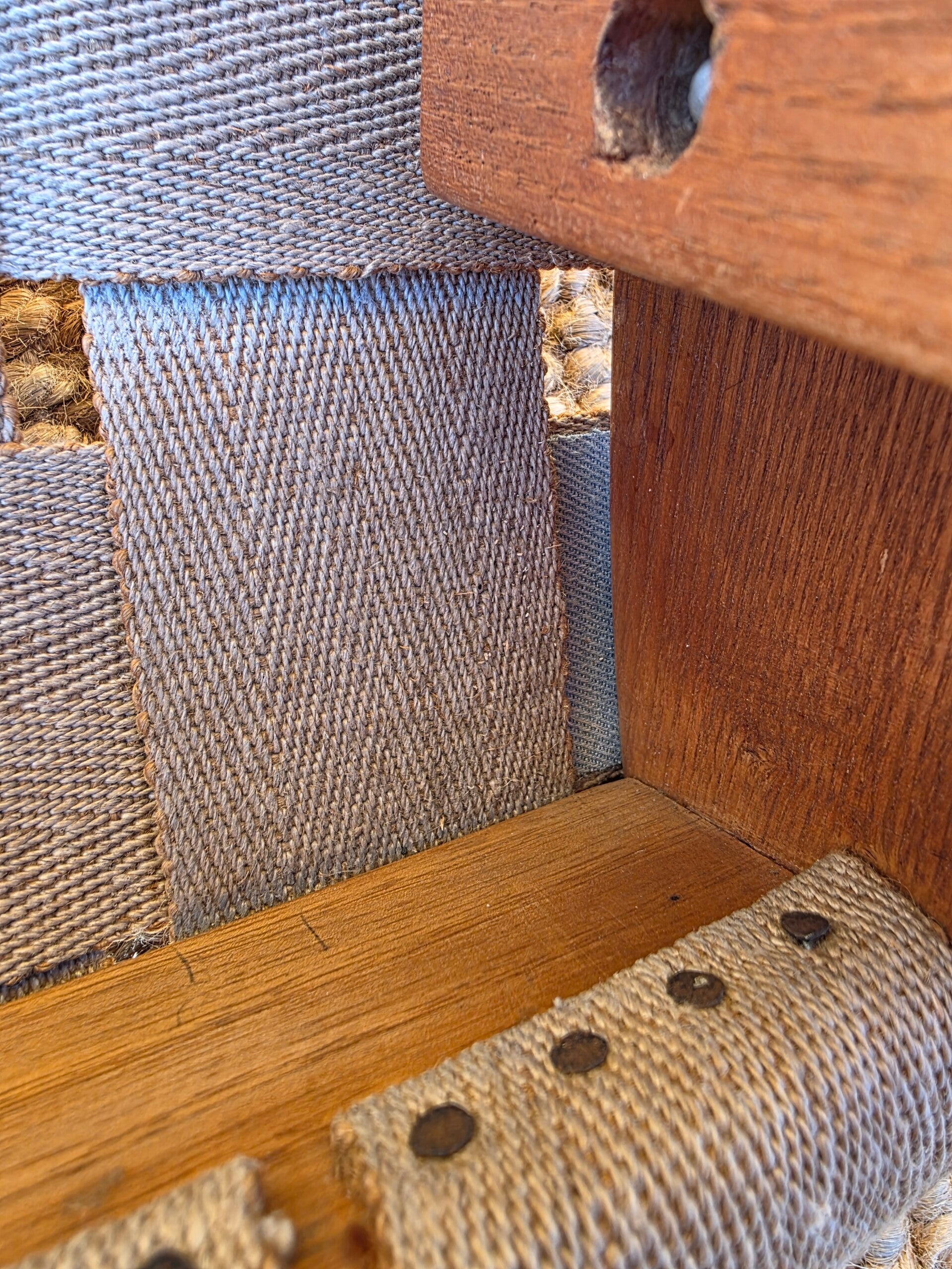 - an zwei Stellen wurden die angescheurten Gurten mit festen Aufbügelstoff fixiert um weiteteres Scheuern zu verhindern